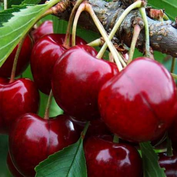 | Плоды имеют глубокий махагоново‑красный цвет, округло‑сердцевидную форму и плотную, сочную мякоть с насыщенно сладким вкусом, отлично подходят для употребления свежими, в десертах или заготовках. Этот сорт также обладает хорошей устойчивостью к растрескиванию ягод, а дерево формирует вытянутую, устойчивую крону и обильно цветёт розово‑белыми цветами весной. |