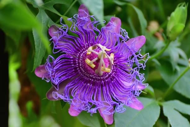 | Passion Purple — вьющаяся страстоцветная лиана (Passiflora), которая украшает сад, террасы или перголы крупными и эффектными пурпурно‑розовыми цветами с контрастными нитевидными коронами. Такие гибриды отличаются богатым и продолжительным цветением в летний сезон, а тёмно‑зелёные пальчато‑лопастные листья создают красивый фон для ярких цветов. |
