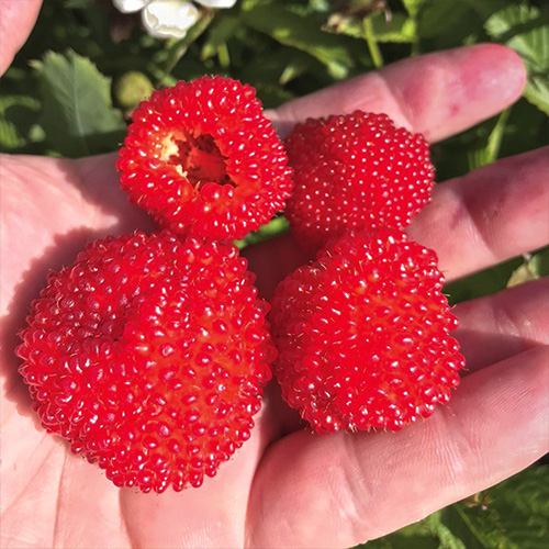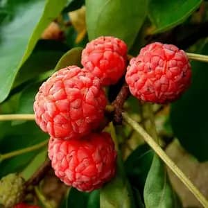 | Клубничное дерево "РУДРА" | Растение привлекает внимание своими крупными ярко-красными или бордово-красными съедобными плодами диаметром примерно 2,5–5 см, внешне напоминающими клубнику или шелковицу, с сладкой, сочной мякотью и ароматом, близким к дыне или инжиру. | |