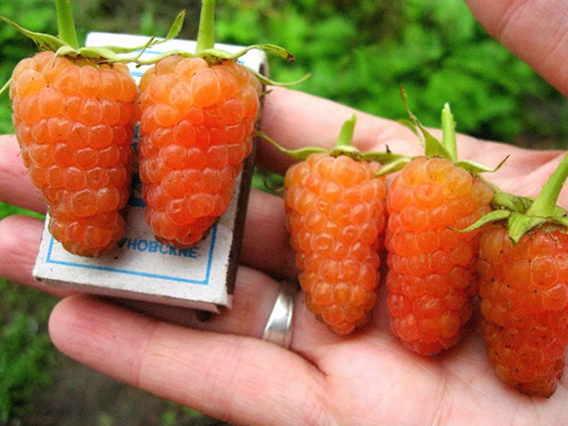 Ремонтантная малина оранжевого цвета. Ягода очень сладкая, до 5 см. длинной, транспортабельность слабая. Плодоносит с лета и до морозов. Крупноплодный ремонтантный сорт с желтыми ягодами универсального назначения использования. Плодоношение происходит преимущественно на однолетних побегах. Малина среднего срока созревания, на побегах текущего года начинает плодоносить с середины июля в южных областях, в других — в начале-середине августа. Оранжевое чудо обладает хорошей силой роста, куст мощный, относительно высокий, в основном до 1,5−2 метров, но может достигать и 2,5 метра. Стебли среднепониклые и среднетолстые по ширине. Побегообразовательная способность высокая, побегов от 6 до 10 штук.