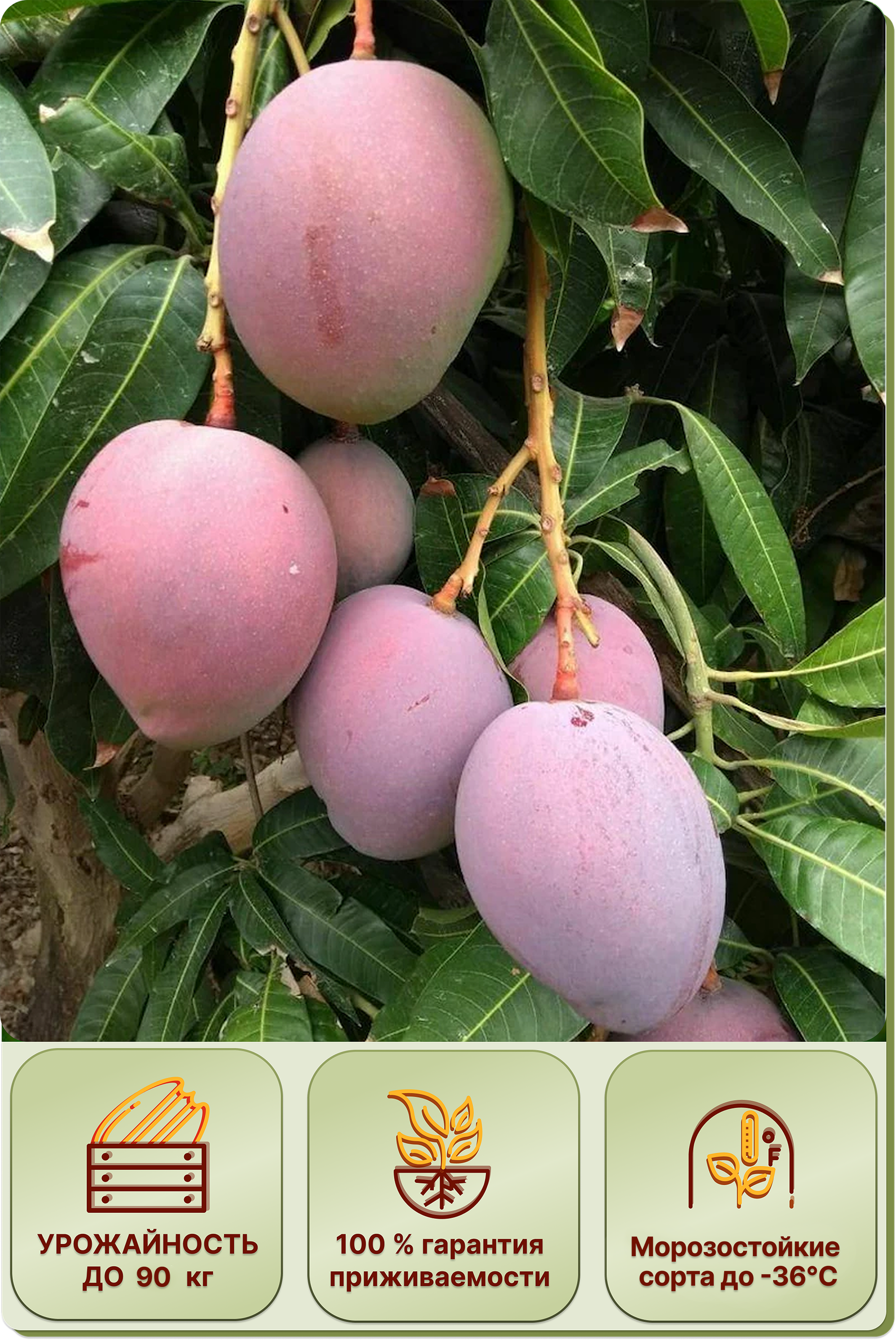 - Идеально растут во всех регионах России: Наши саженцы манго адаптированы к холодному климату и хорошо переносят засуху. Вы сможете наслаждаться сочными фруктами даже в условиях недостатка тепла.