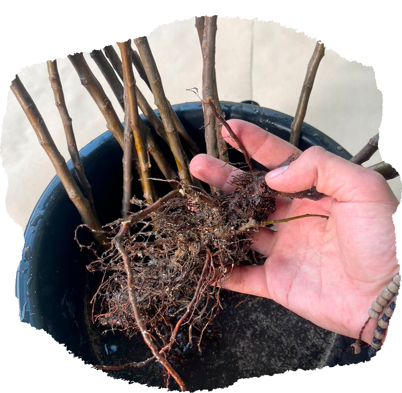 Кўчатларнинг хусусиятлари: узунлиги - 45-55 см.Улар ҳажми кичик, бир йиллик. Ёш ўсимликнинг илдиз отиши катталарникига қараганда анча осон. Биз кўчатлардан баргларни олиб ташлаймиз, чунки улар йетказиш пайтида тушиб кетади, аммо бу вақт давомида улар поя ва илдиздан энергия олади. Яхшироқ омон қолиш ва тез ўсишни бошлаш учун биз поянинг юқори қисмини ҳам кесиб ташлаймиз. Сиз экиш учун тайёр бутунлай соғлом кўчат оласиз. Кўчатлар ишлаб чиқарилган мамлакат: Россия ва Голландия. Кўчатлар сақланадиган омборларимиз Ўзбекистонда жойлашган. Шаҳарлар - Тошкент ва Самарқанд.